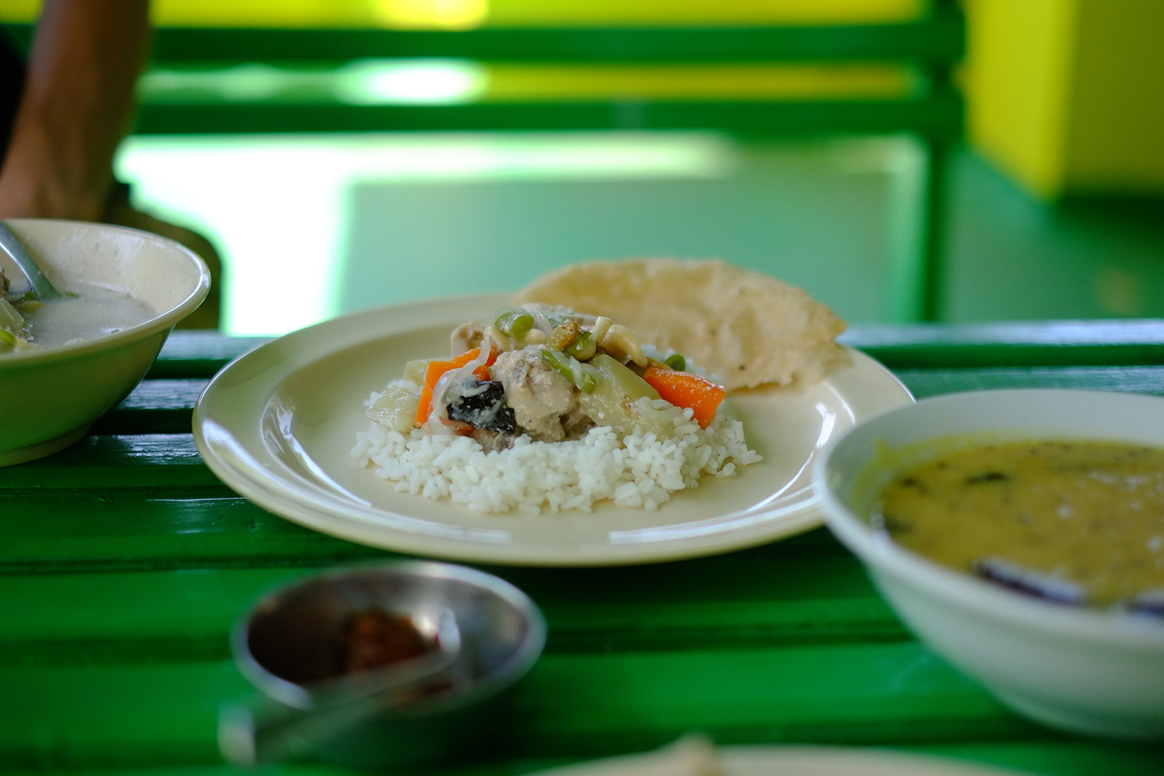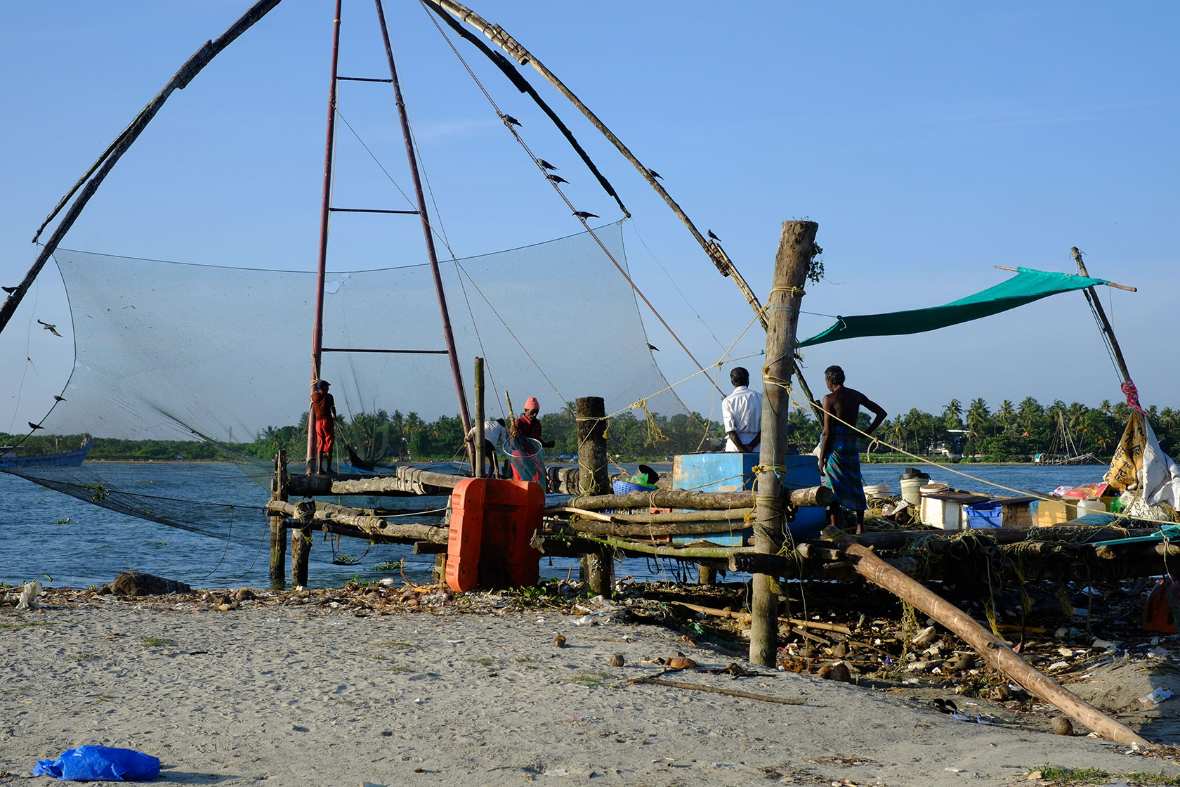 fishing nets and ancient mosques in a tropical setting. During a walk through the city I could admire the walls with colorful graffities, observe the work of the fishermen at the port or haggle at the market. There I met the Englishman Matt, with whom I learned the art of Indian cuisine in a nice homestay kitchen. The result was a coconut chicken curry on a bed of Kerala rice, accompanied by burri and a spicy vegetable dahl. Yummey!