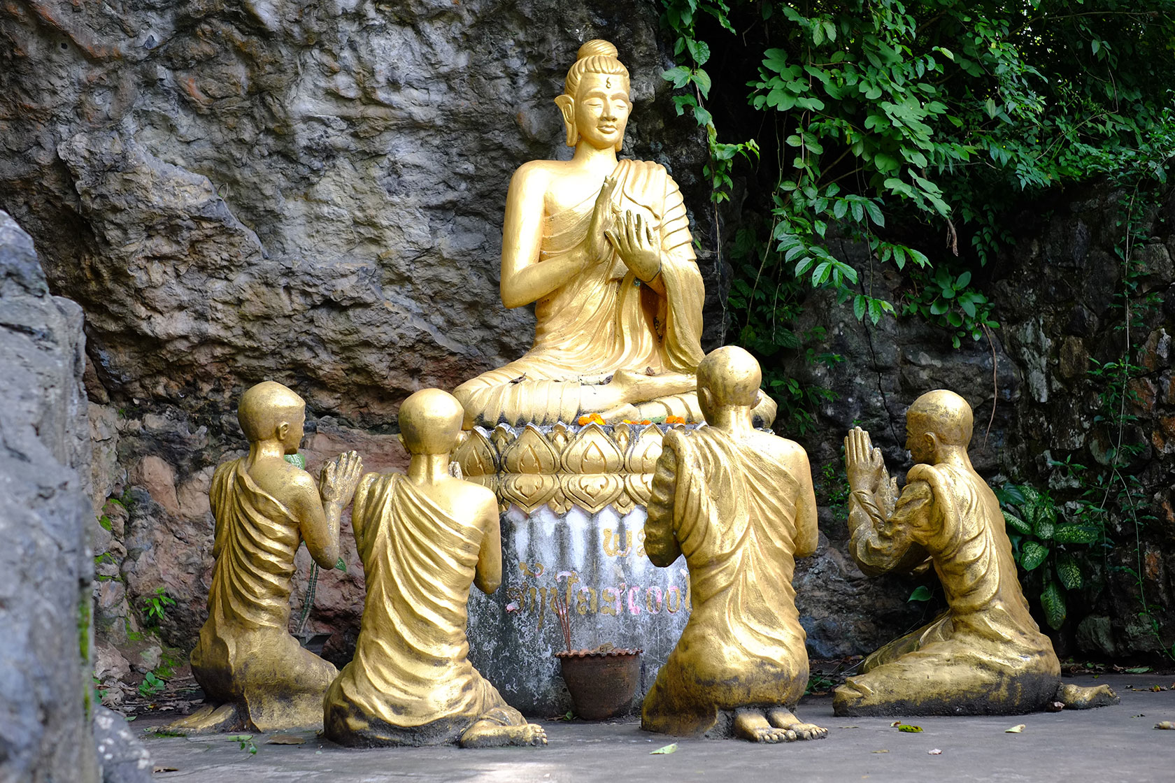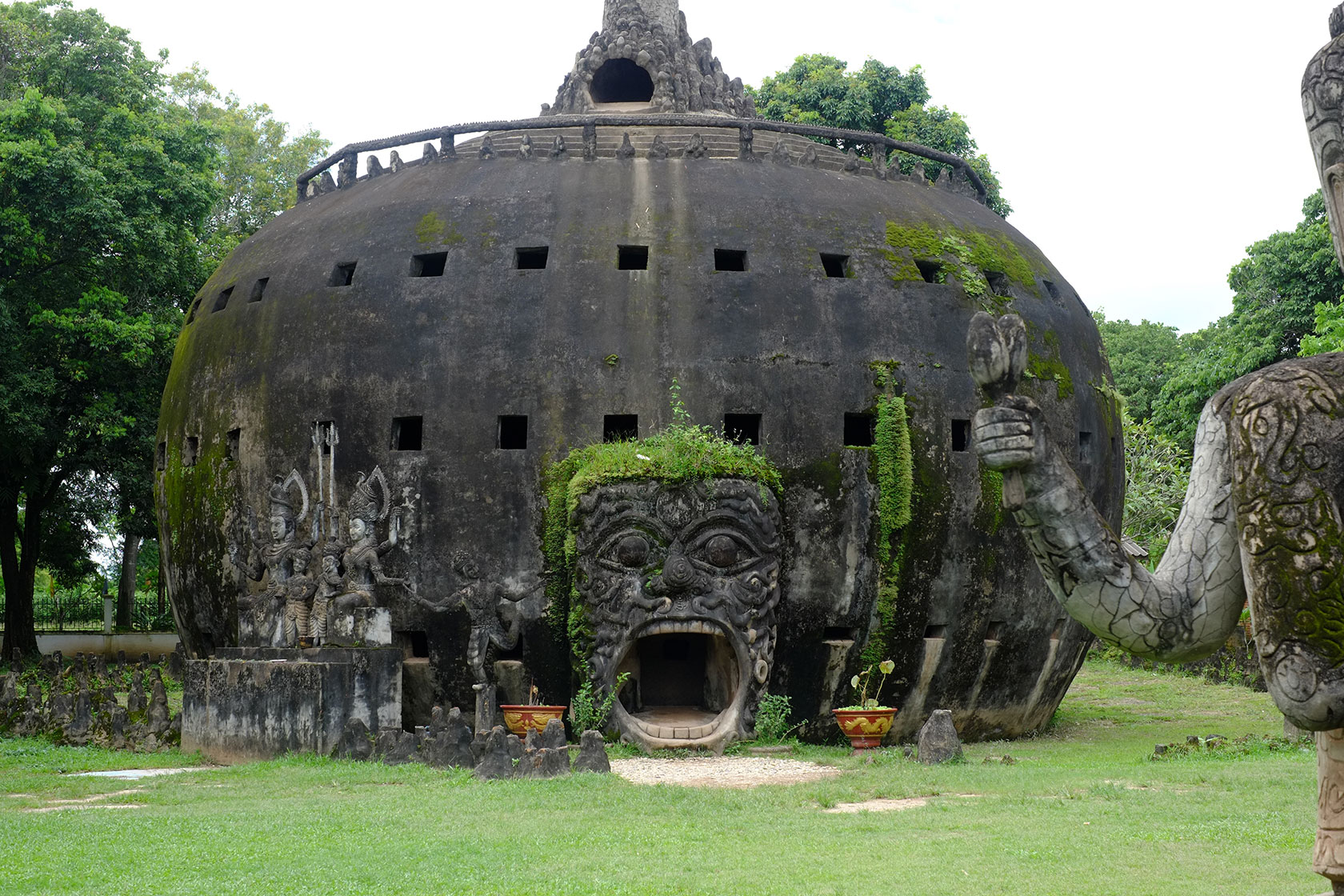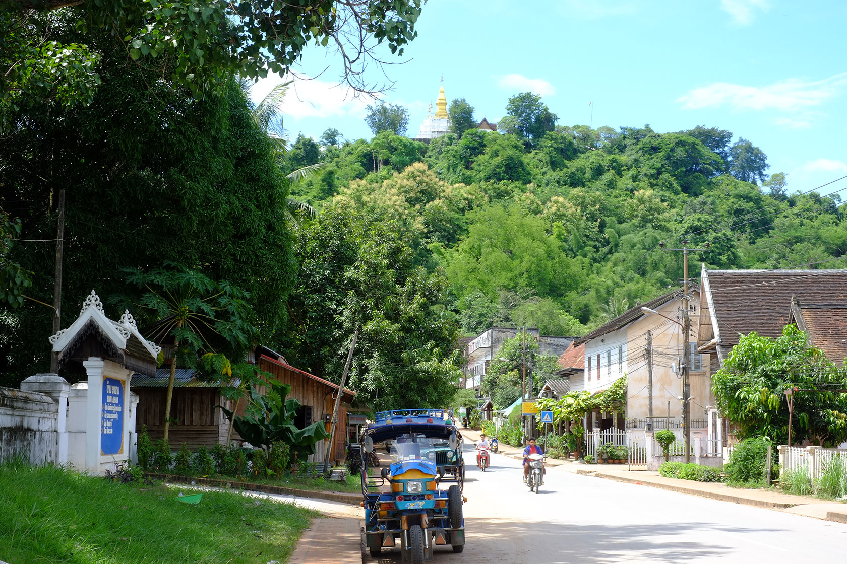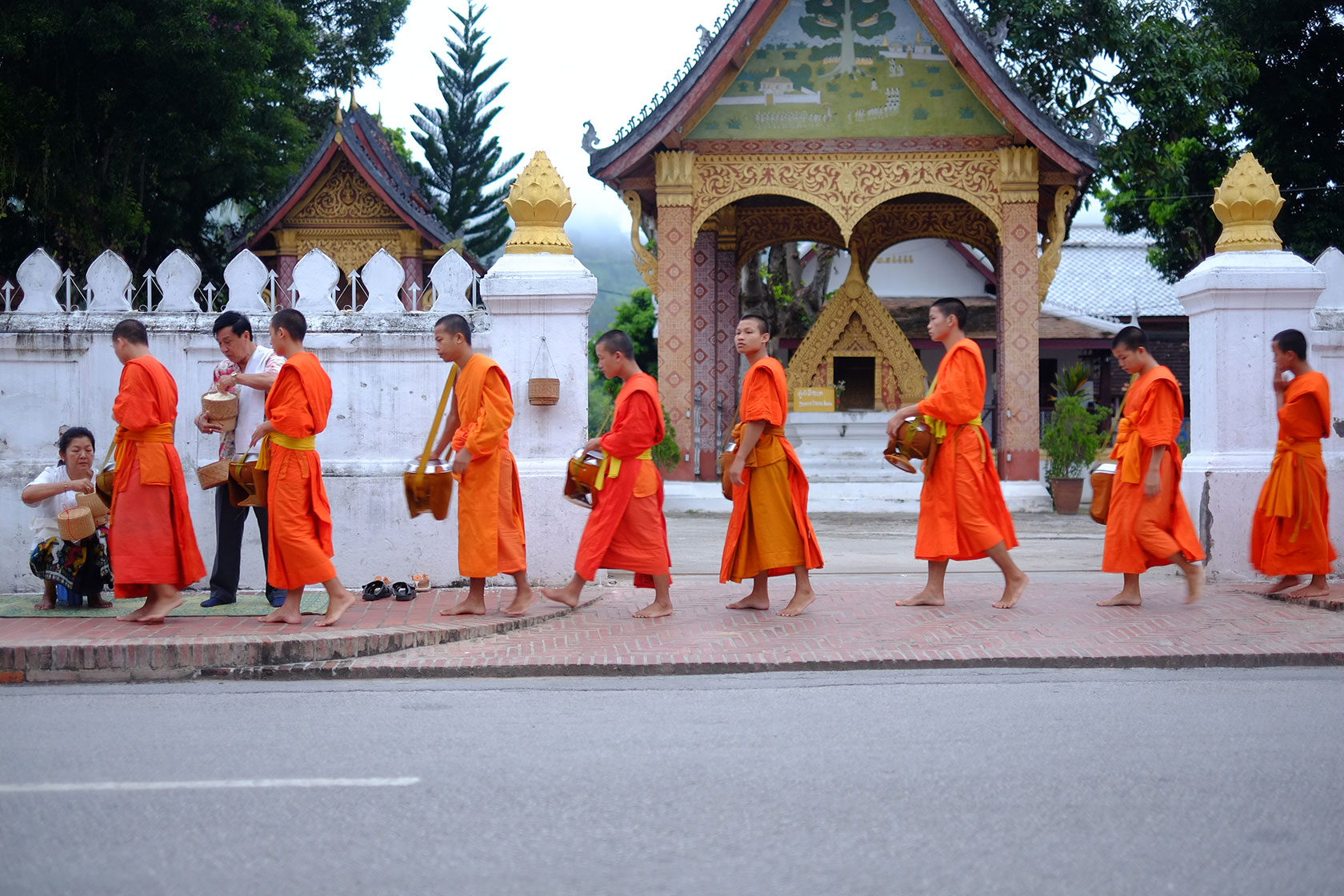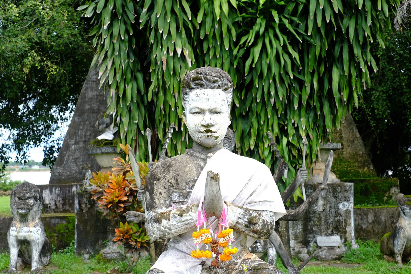 Vientianne. The city still has a village atmosphere and offers, beside dilapidated houses, chic cafes and restaurants and a tremendously beautiful Buddha Park which we visited. The last days of our Laos trip took us to the north of the country to Luang Prabang. The small village, which in the 16th Century could call itself capital city, is nestled in beautiful green-covered mountains. Lots of cafes, markets and nature invited us to linger and we enjoyed the last days together before our paths will separate. Pia will visit Myanmar for a month and I move to the colorful world of India.