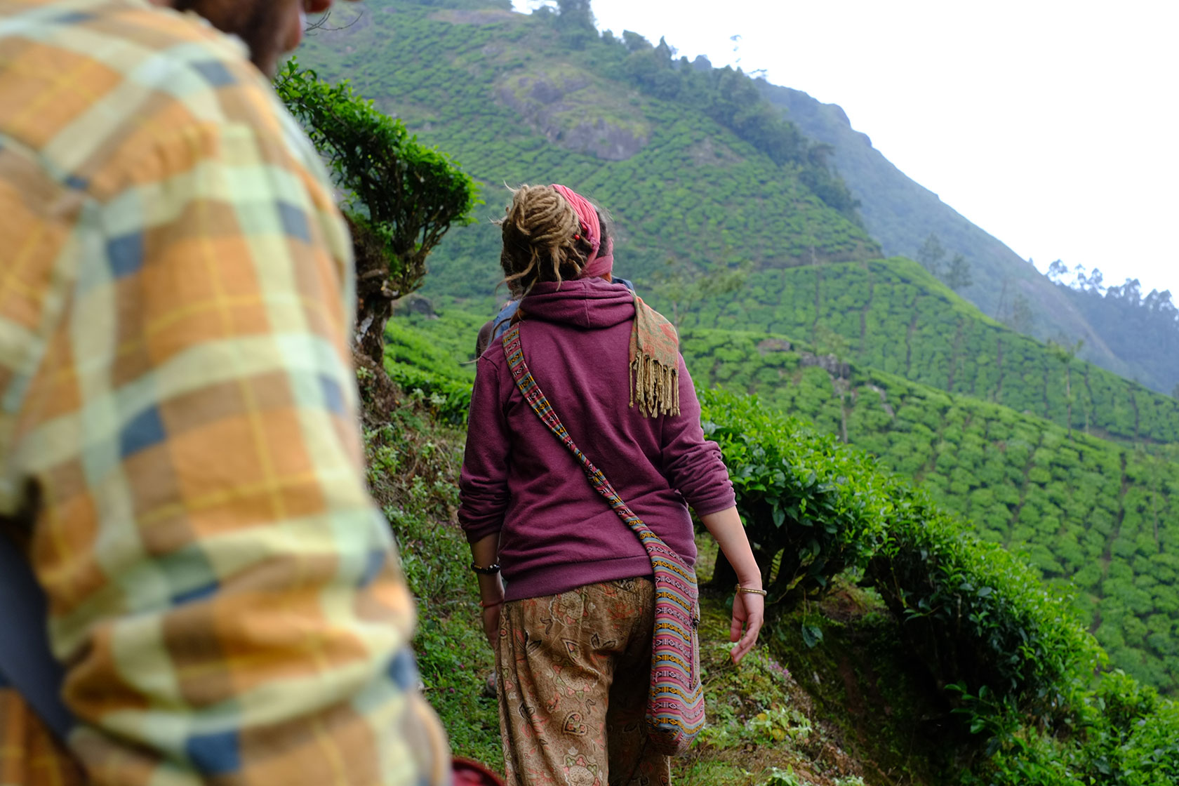 The bus journey from Cochin to the mountain scenery of Munnar was characterized by a beautiful mountain road overlooking the endless tea plantations and mountain ranges. In the small village I got to know many interesting people and made a trek in the hilly landscape of Munnar. The field workers here picking around 20kg tea leaves daily and receive barely 190Rp (2.80 CHF). Despite obvious poverty I meet here again and again enormously friendly locals who wanted to talk to me. Actually my plan after Munnar was to travel alone in the