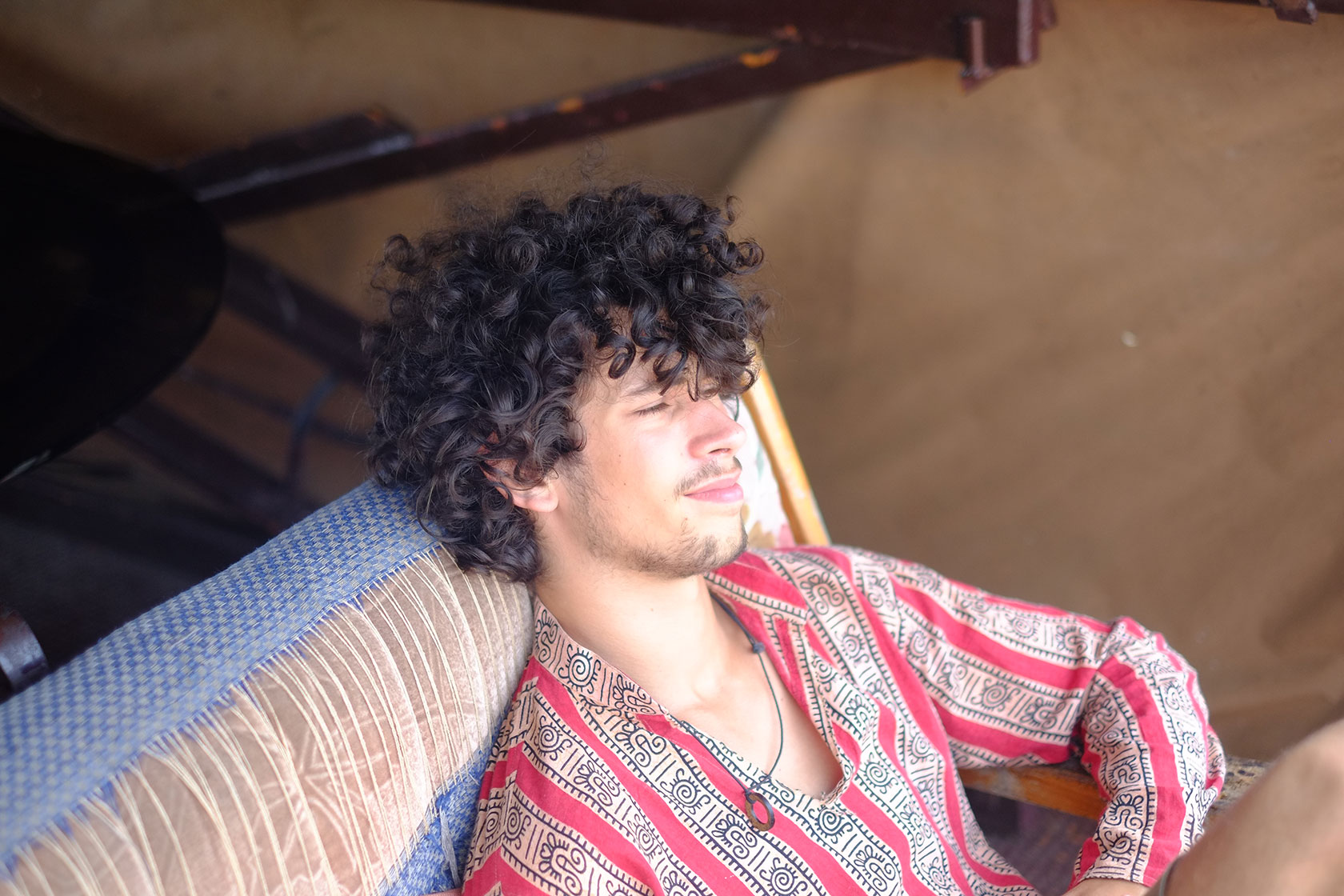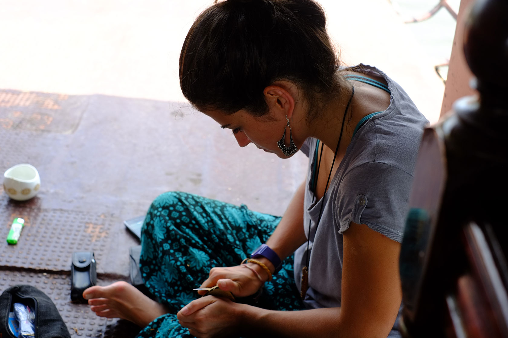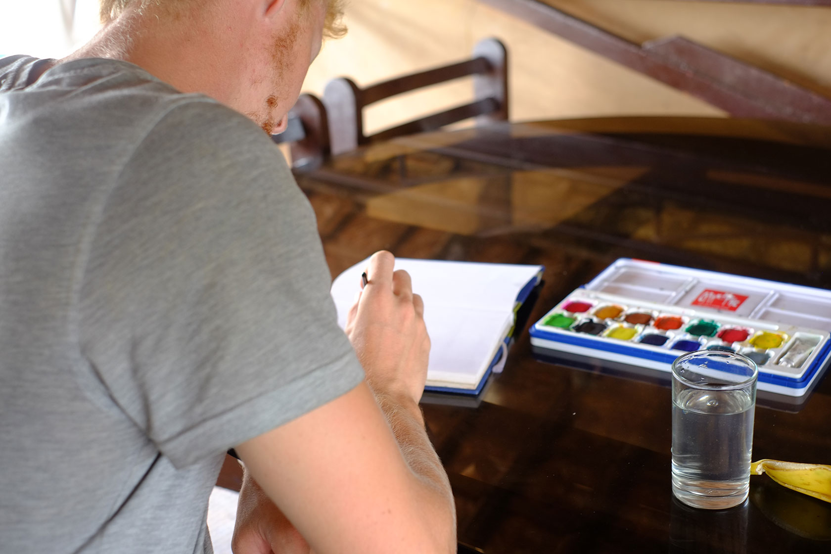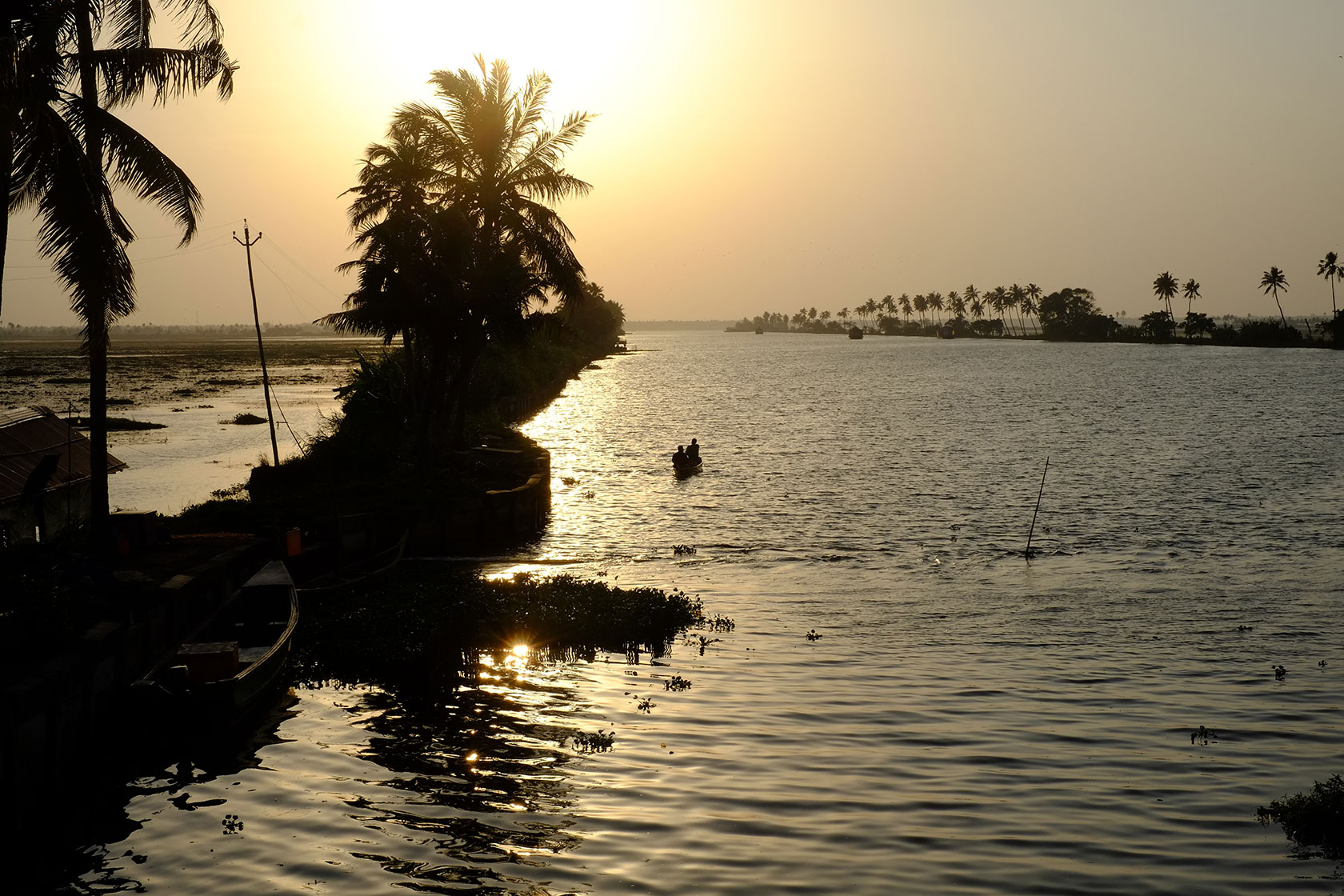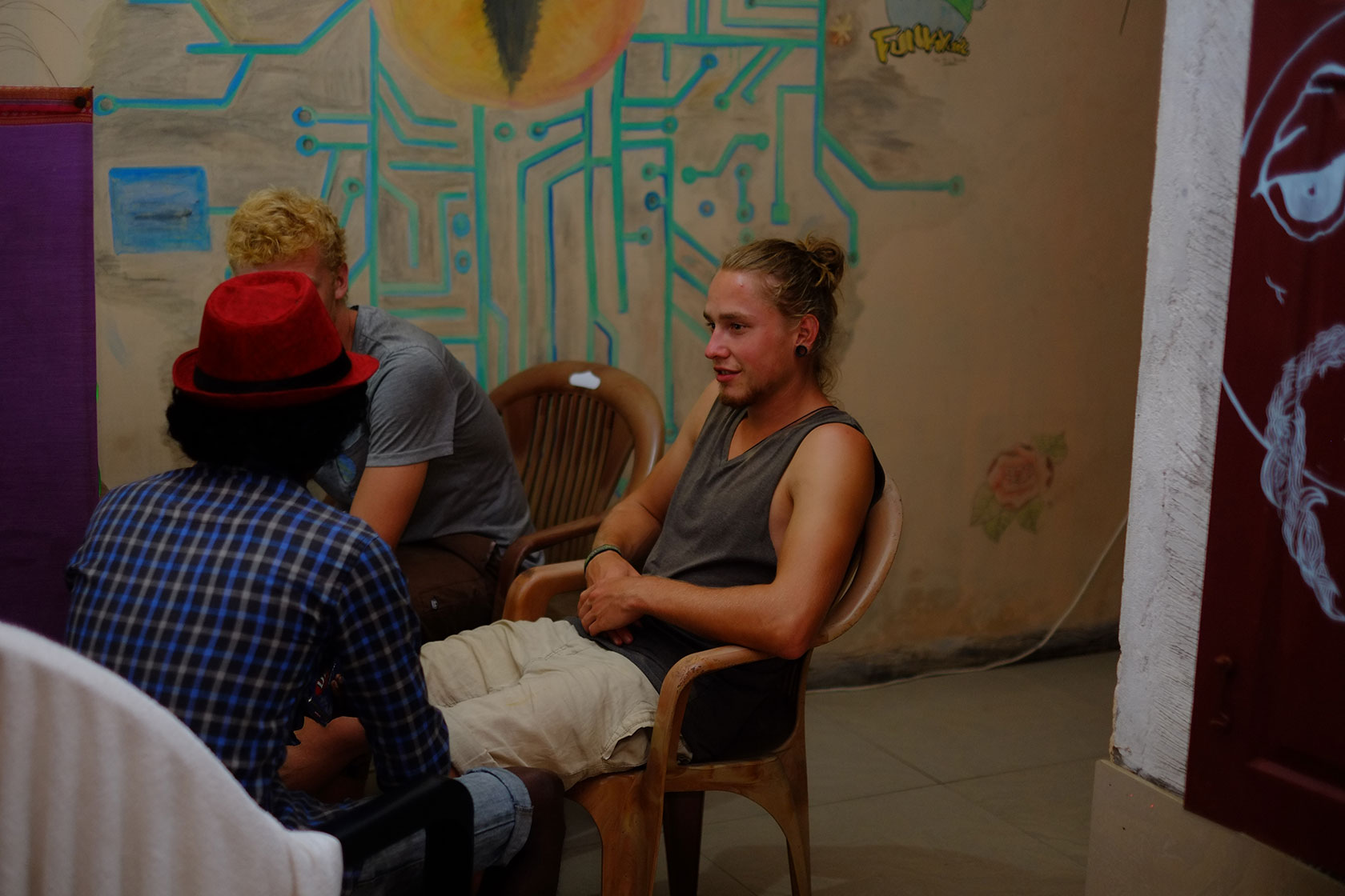 direction north, but I met a group sympathetic Austrians and Spanish girls, and so I decided spontaneously to join their itinerary and travel to Allapey. There we rented a houseboat with driver, cook and chill-out area and explored the famous backwaters of Kerala. The atmosphere was extremely relaxed and everyone went to his creativity in the form of painting, wood carving and writing. The evening we enjoyed with a horrible tasting coconut brandy, which we transformed with honey, lime and sprite to a more or less drinkable cocktail. Life is great!