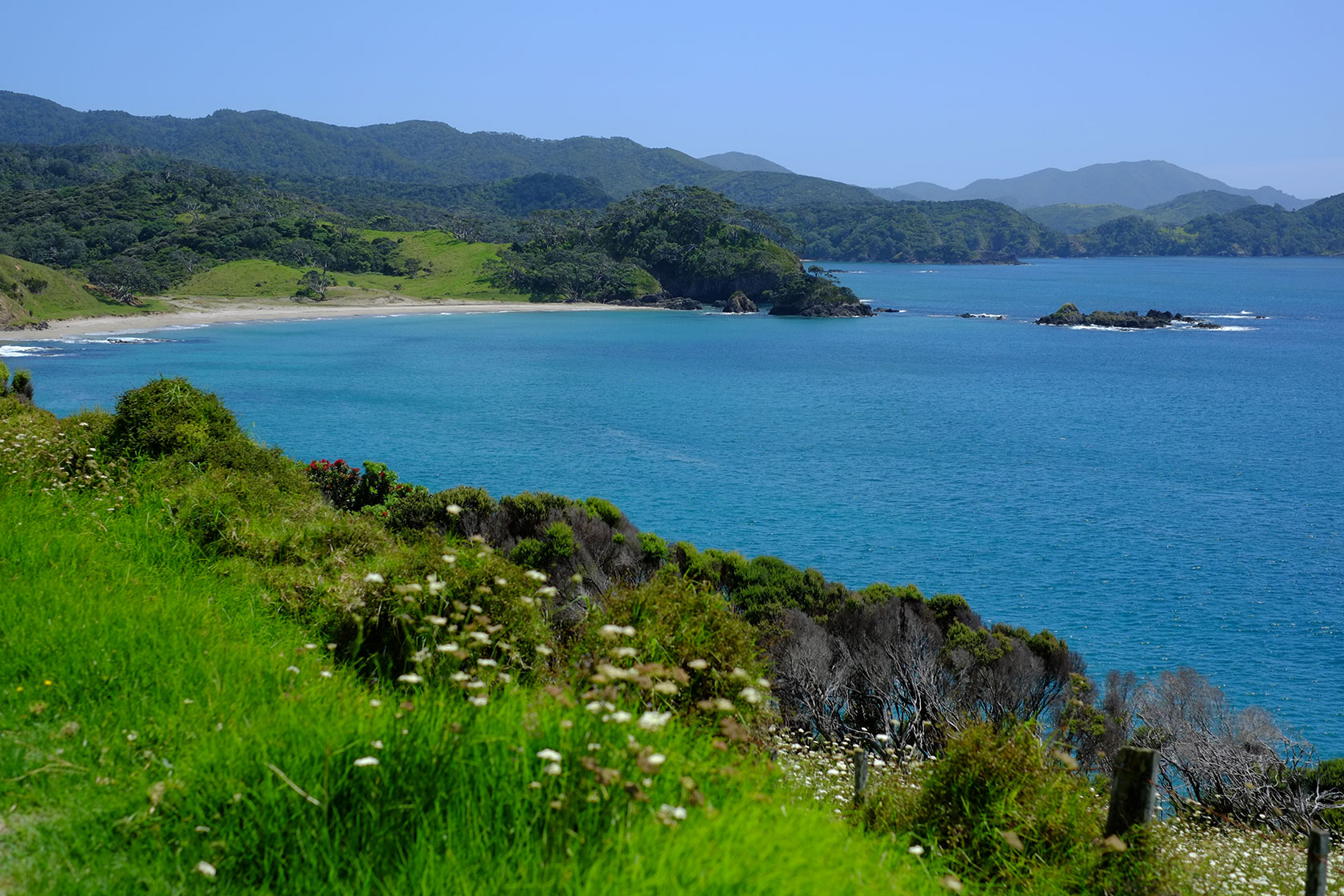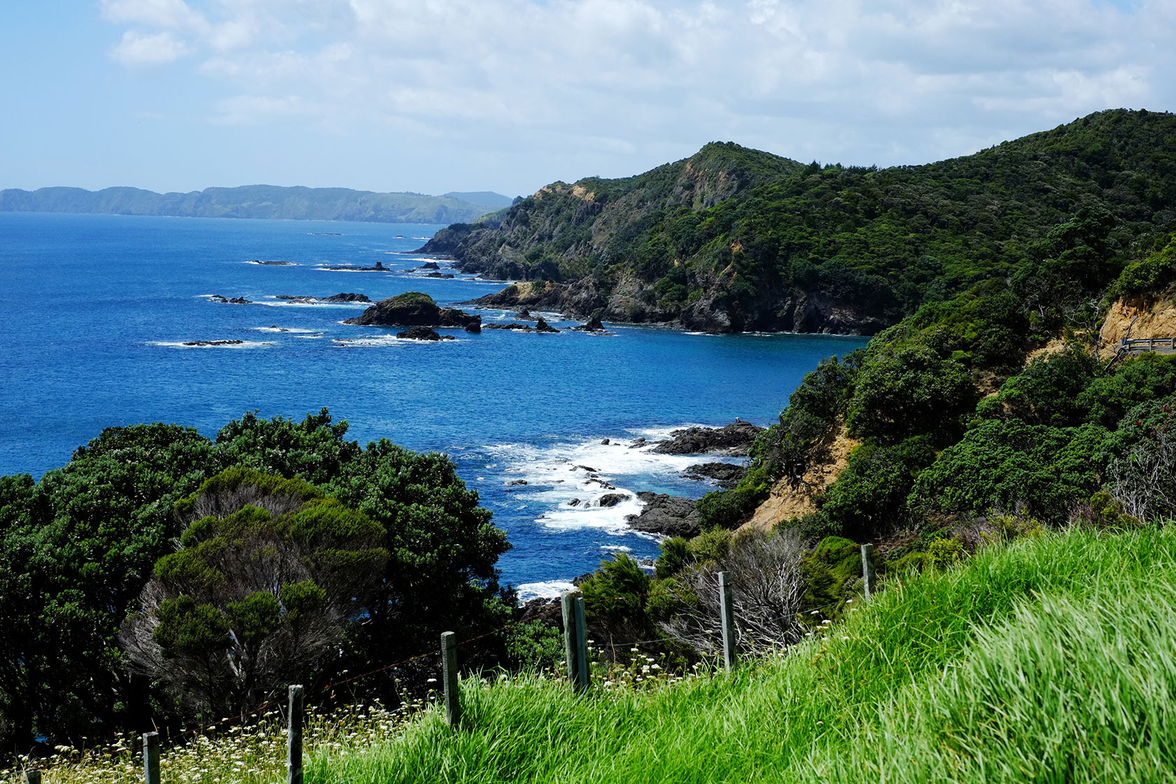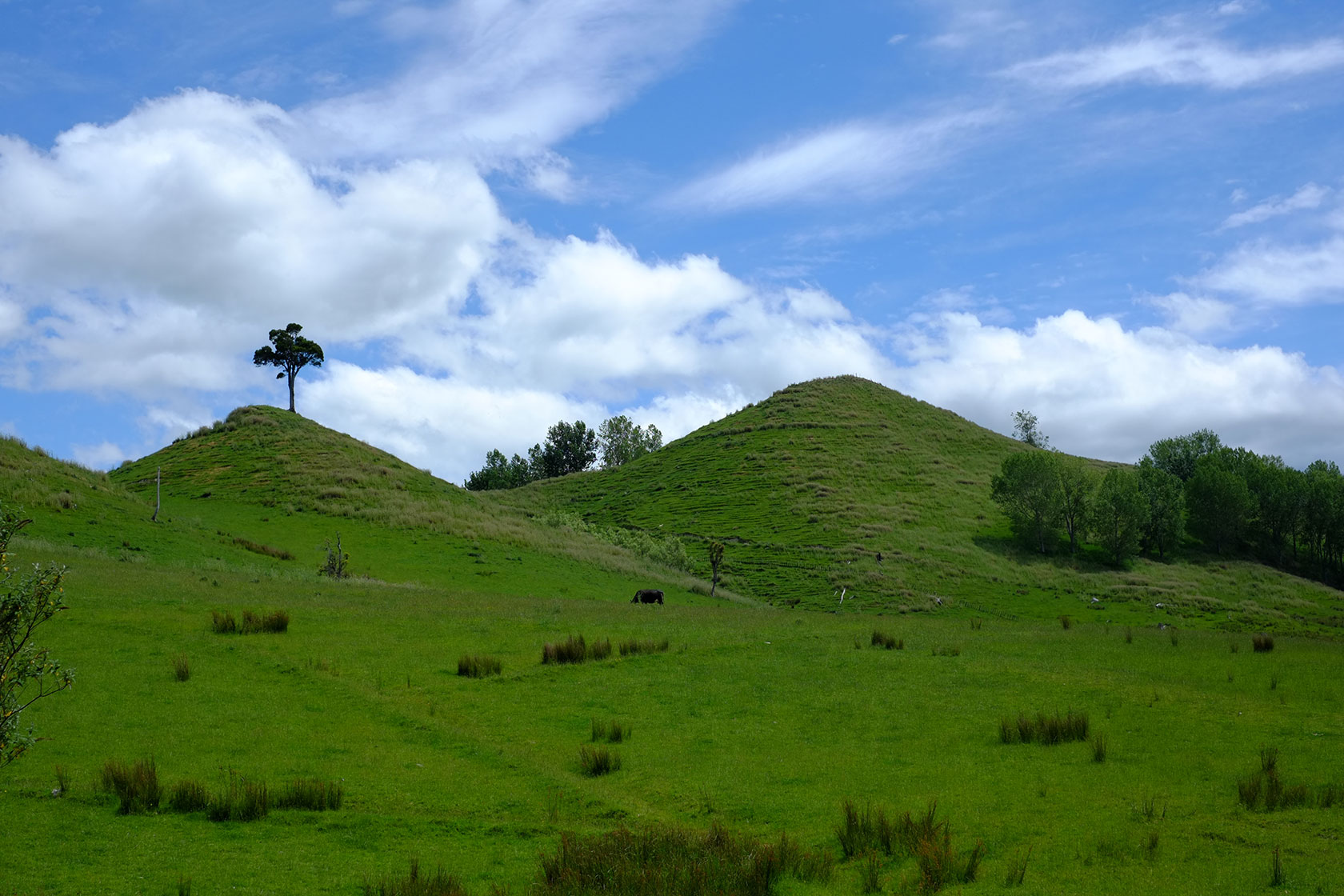 Auckland welcomed us with fog and rain, and so it proved also that the eyes could only guess from the Skytower how the city looks from the top down. Our new buddy, who will accompany us for the next five weeks, is now a Toyota camper, with automatic, ice box and a mobile gas cooker. The trip started towards the north and the first purchases and refueling showed us once again that we had landed on another island of high prices. Nevertheless, the North impressed us with landscapes that only boldest fantasies could create. Hill shapes in all shades of