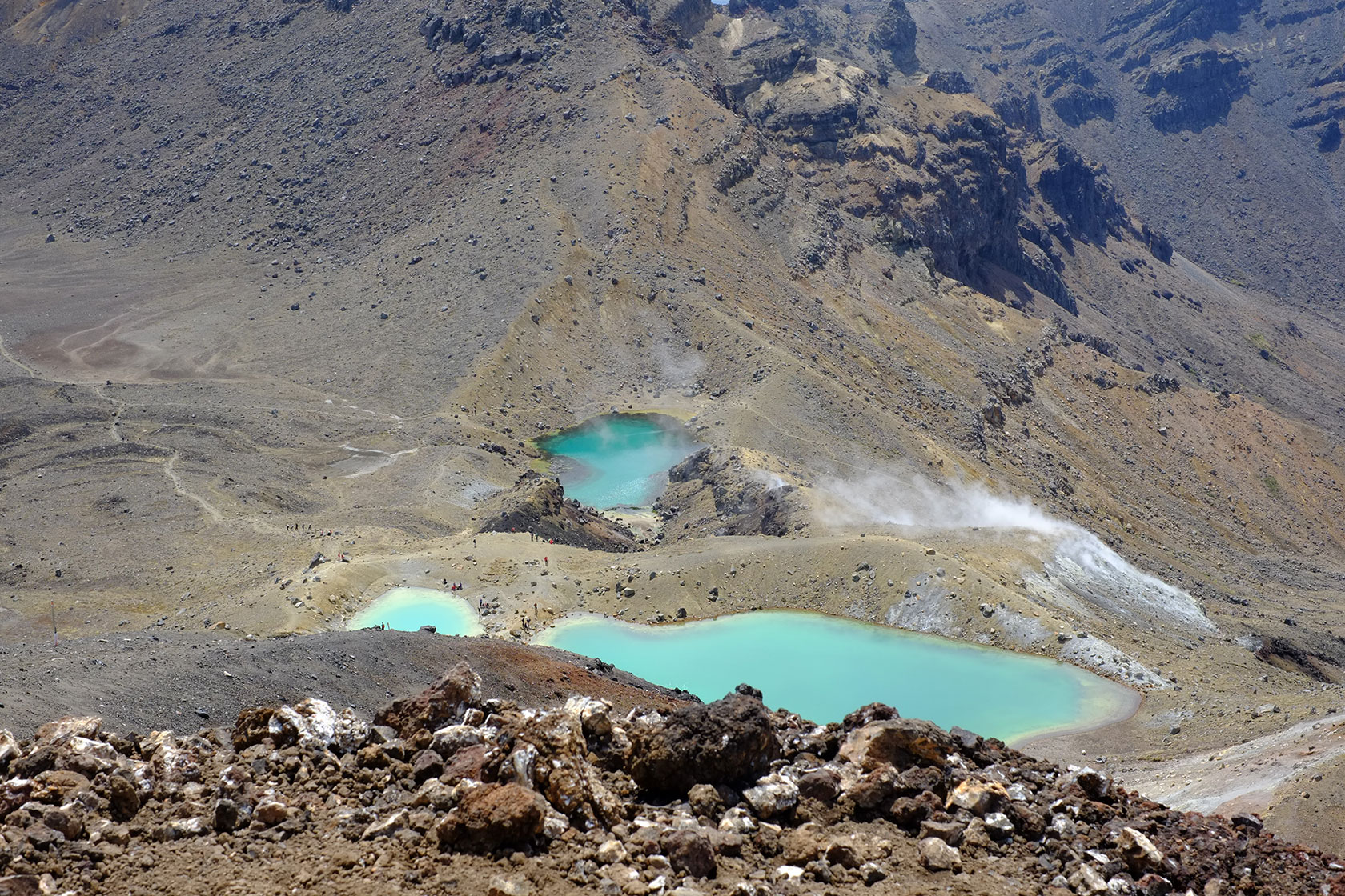 green, water from in rich blue to green, barren rocky landscapes in all shades of gray, Caribbean beaches and white snow landscapes – all just a few hours away from each other. A highlight was definitely the Tongariro Alpine Crossing that offered over 20 km and 800 vertical meters a door in a landscape of an active volcano. The smell of sulfur, the vapor which rose up from under the feet, the well-formed crater lakes and the mystical fog left a plunge into an unknown world. Our journey now takes us with the ferry to the South Island of Paradise.