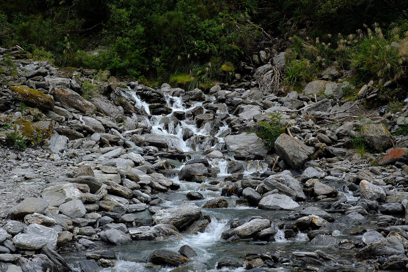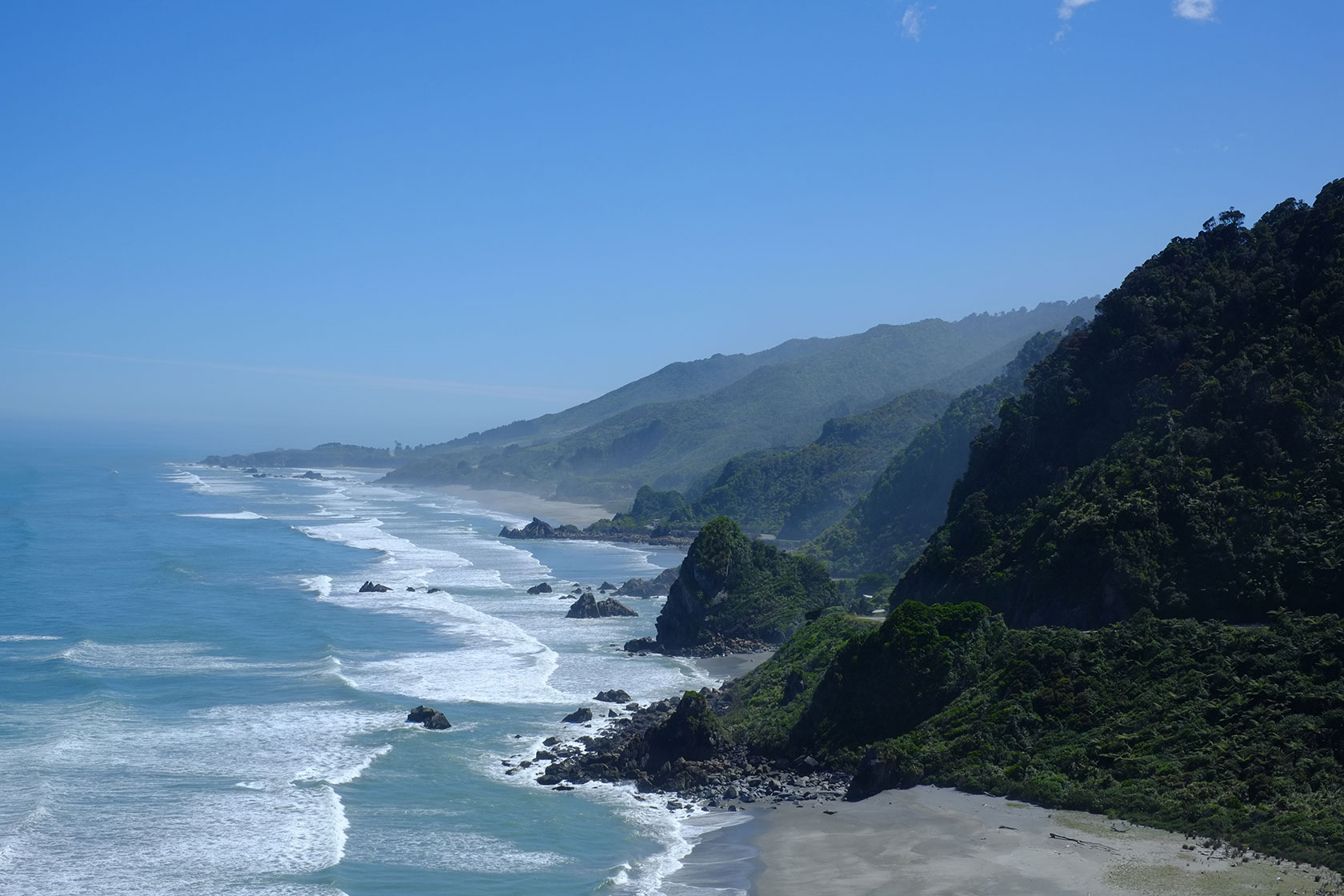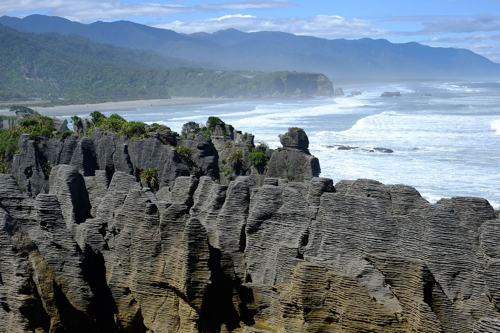 A ferry took us at 02:30 am in a good 3 hours ride from the North Island to the South Island of New Zealand. Our route took us at first to the north in the Tasman National Park which offered great trekking and let us walk through beautiful green forests, to remote beaches and nice hills. This year we celebrated Christmas very atypically with warm temperatures, my first attempts at climbing a rock wall, a 3-course dinner on the gas cooker and beer with friendly people from all over the world. The trip took us then to the west coast of the island, which especially greeted us with a lot of rain and wind. At a campsite just outside of Queenstown, we celebrated New Year’s Eve, but only our cork pop at midnight reminded us that we are now in 2014 – blame were probably the countless signs of