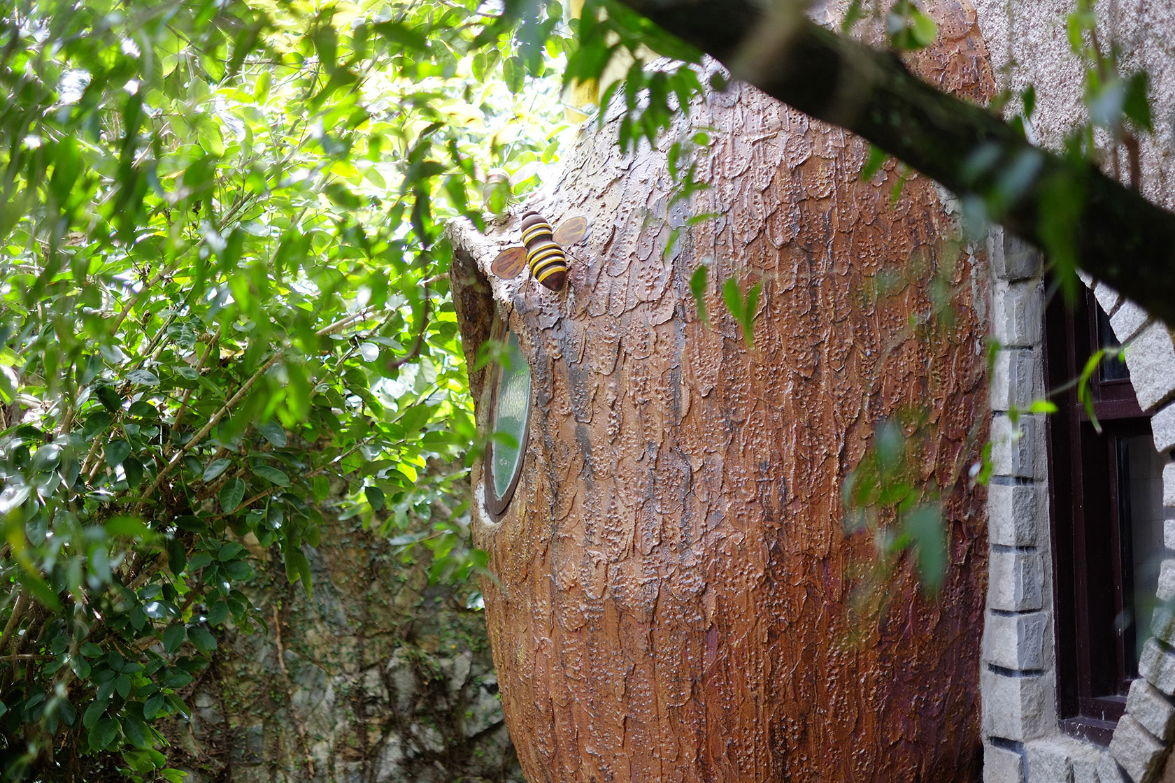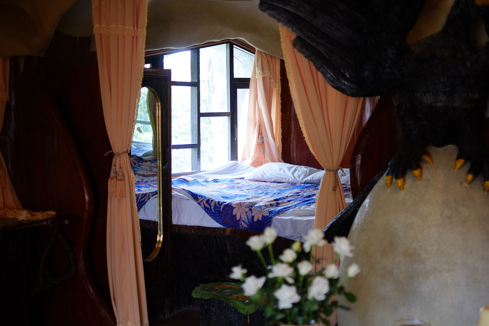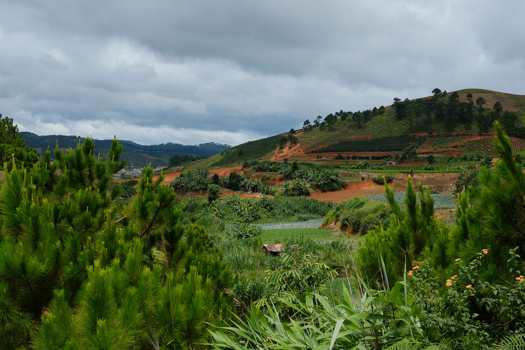 Dalat is nestled between mountains and forest and very popular by vietnamese people as a honeymoon destination. After about 19 hours bus ride we arrived tired the small town in central Vietnam. With the rented motorcycle we explored the region and discovered the so called „Crazy House“, which was created in 1990 by the designer Dang Viet Nga. A architectural style, you can not assign to these structures. The interior of the building consists of caves, winding corridors, winding staircases, strange furniture and whimsical life-size animal statues. Straight and right angle forms do not exist. We felt us like Alice in Wonderland. Just
